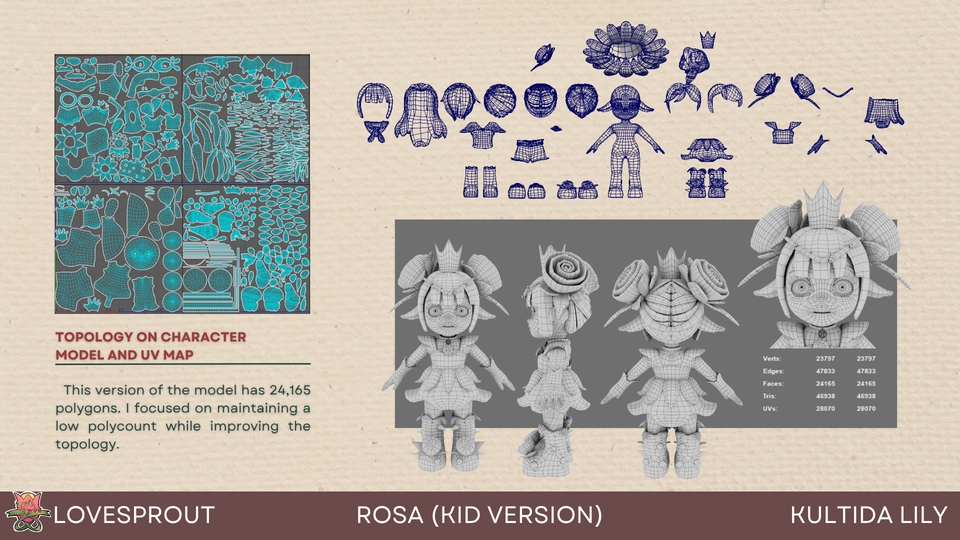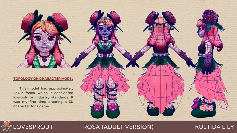 ฉันเป็นนักศึกษาจบใหม่จากมหาวิทยาลัยเทคโนโลยีพระจอมเกล้าธนบุรี ได้เกียรตินิยมในสาขา Visual Effects สามารถออกแบบตัวละครให้มีเอกลักษณ์ รวมถึงสามารถขึ้นโมเดล 3D จากแบบร่างได้อย่างแม่นยำ พร้อมทั้งเข้าใจ pipeline การทำงานของอุตสาหกรรมเกมและแอนิเมชันเป็นอย่างดี หากคุณกำลังมองหาคนรุ่นใหม่ที่เข้าใจสายงานนี้จริง ๆ และตั้งใจทำงานอย่างมืออาชีพ ยินดีมาก ๆ ที่จะได้ร่วมงานกันค่ะ