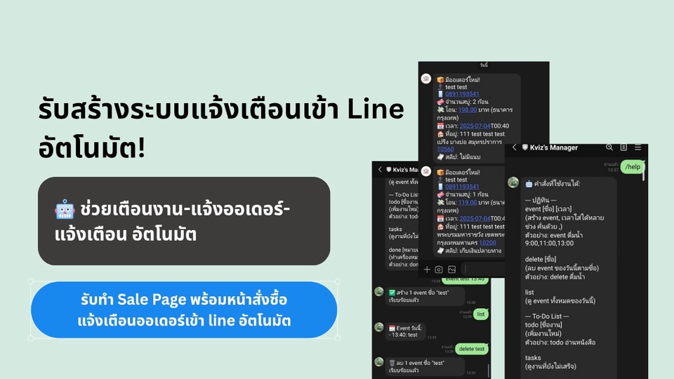 รับสร้างแจ้งเตือนเข้า line oa (ใช้แทน line notify) รับสร้าง landing page รับสร้าง website ทำริชเมนู