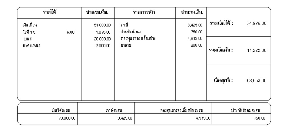 - • รายงานเงินเดือนประจำเดือน (Payroll Summary)