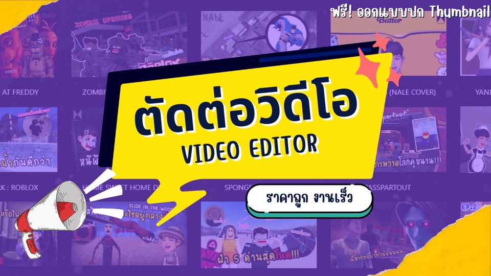฿1,000วิดีโอความยาวไม่เกิน 3 นาที - วิดีโอ Full HD 1080p - Thumbnail 1 ภาพ - Effects และ Color grading ฟรี - แก้งานฟรี 3 ครั้ง (ครั้งต่อไป 200/ครั้ง) * Subtitle 150-200 บาท (ภาษาไทย) 250-350 บาท (ภาษาอังกฤษ)
