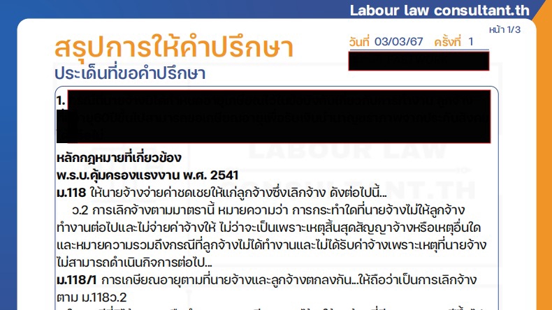 บริการให้คำปรึกษาปัญหากฎหมายแรงงาน ทั้งฝ่ายนายจ้างและลูกจ้าง