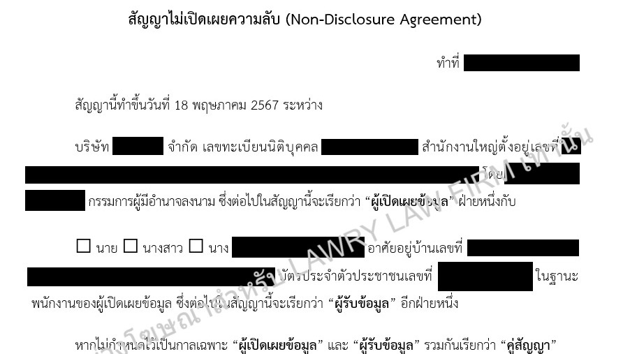 เรามีทีมทนายความที่มีประสบการณ์ในการร่างสัญญา ตรวจสอบ รีวิวสัญญา จัดทำและแปลเอกสารกฎหมาย ทั้งภาษาไทย ภาษาอังกฤษ ภาษาจีน โดยเรามีบริการ ดังนี้ รับร่าง/รีวิวสัญญาทางธุรกิจทุกประเภท (Drafting/Reviewing various commercial agreements) เช่น ● Shareholder Agreement สัญญาระหว่างผู้ถือหุ้น ● Loan Agreement สัญญากู้ยืมเงิน ● Share Pledge Agreement สัญญาจำนำหุ้น ● Service Agreement สัญญาบริการ ● License Agreement สัญญาอนุญาตให้ใช้สิทธิ ● Non-Disclosure Agreement ข้อตกลงรักษาความลับ ● Data Processing Agreement ข้อตกลงการประมวลผลข้อมูลส่วนบุคคล รับทำ/แปลเอกสารกฎหมาย (Providing/Translating legal documents) เช่น ● Power of Attorney หนังสือมอบอำนาจ ● Privacy Policy นโยบายความเป็นส่วนตัว ● Work Regulations ข้อบังคับการทำงาน ● Articles of Association ข้อบังคับบริษัท ● Will พินัยกรรม รับให้คำปรึกษาปัญหาทางกฎหมาย (Providing legal advice and opinions) เช่น ● Legal Advice ● Legal Opinion ขั้นตอนการทำงาน 1. สอบถามรายละเอียดงาน ความต้องการของลูกค้า และให้ข้อแนะนำเพิ่มเติม 2. ประเมินรายละเอียดงาน จำนวนหน้า ราคา และกำหนดระยะเวลาส่งร่างที่ 1 3. ปรับแก้ไขร่างครั้งที่ 1 หรือ 2 ตามความเหมาะสม