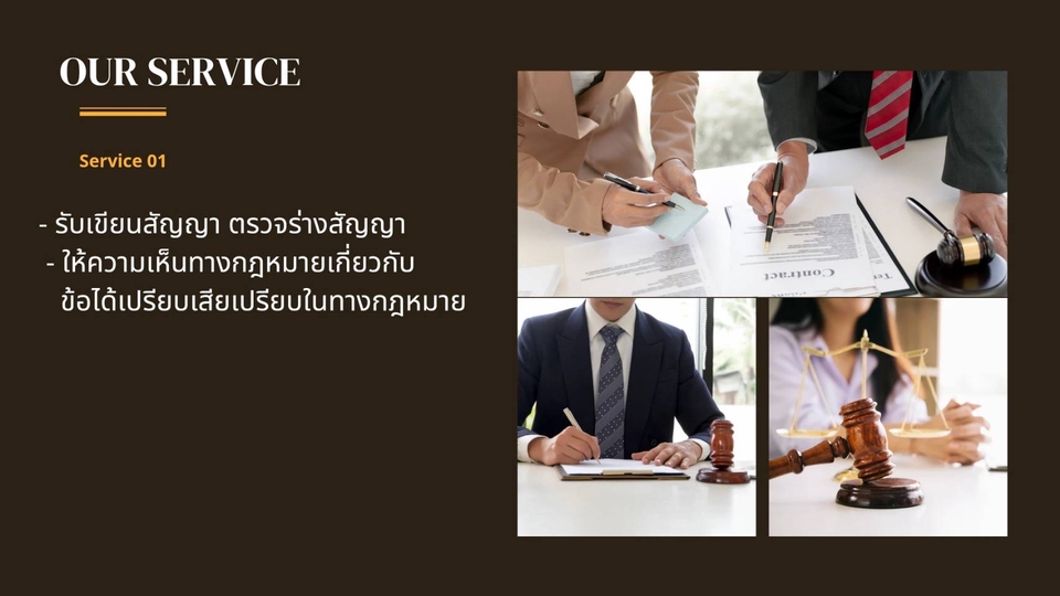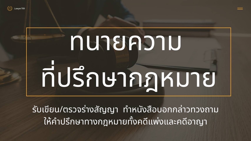 รับตรวจร่างสัญญา ให้ความเห็นทางกฎหมาย ออกโนติสหนังสือทวงถามชำระหนี้ ว่าความฟ้องคดี