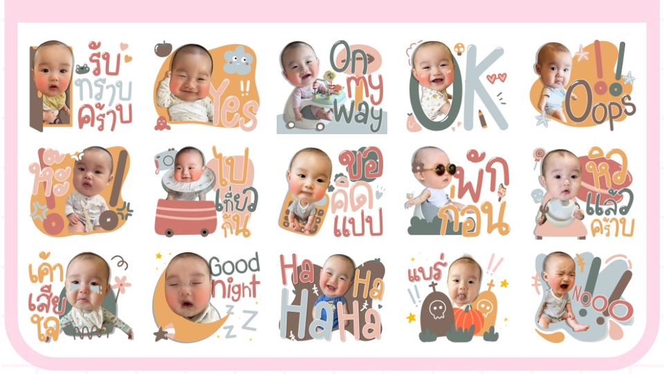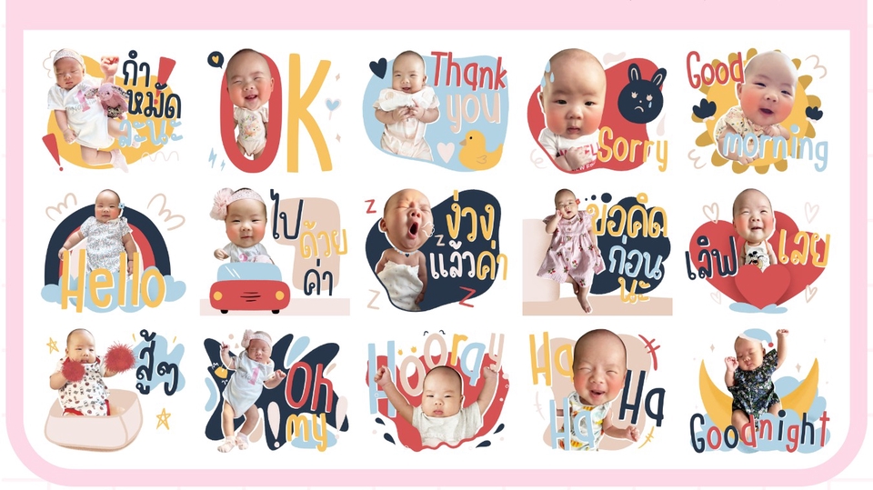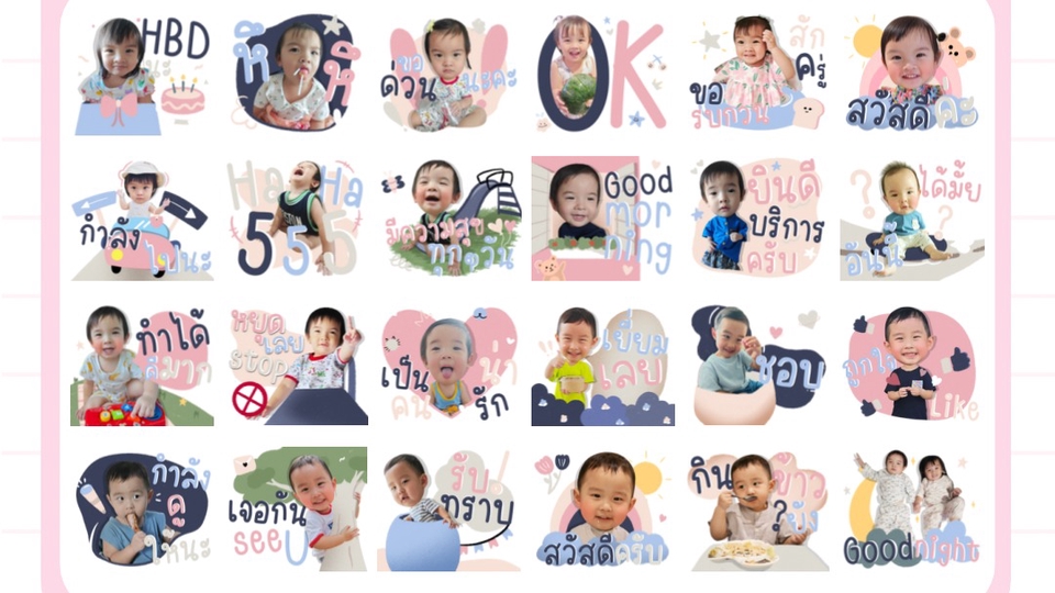 ออกแบบสติ๊กเกอร์ชนิดไดคัทขนาด ธรรมดา/บิ๊ก/อนิเมชั่น -ลูกค้าเลือกโทนสีได้(คุมโทน) มีตัวอย่างสีและตัวอย่างงานให้ดู -รีเควสคำเองได้ ให้เหมาะสมกับชีวิตประจำวัน หรือจะให้ร้านคิดคำให้ก็ได้ -แก้ไขให้หากโดนระบบไลน์รีเจคงาน -ส่งงานพร้อมตัวอย่างการลงขาย -หรือจะเป็นลงขายให้แล้วส่งเป็นของขวัญ(ลูกค้าสามารถเลือกได้ค่ะ) -ลงระบบแล้วอยู่ถาวร ไม่มีหมดอายุ แบบไดคัทขนาดธรรมดา 8 ตัว > 1599 16 ตัว > 3099 24 ตัว > 4399 32 ตัว > 5499 40 ตัว > 6399 แบบไดคัทขนาดบิ๊ก 8 ตัว > 1699 16 ตัว > 3199 24 ตัว > 4499 32 ตัว > 5599 40 ตัว > 6499 แบบอนิเมชั่นไดคัท 8 ตัว > 3999 16 ตัว > 7499 24 ตัว > 10499 32 ตัว > 12999 40 ตัว > 14999 ขั้นตอนการทำงาน 1. ลูกค้าสามารถรีเควสคำได้เองหรือให้แม่ค้าคิดให้ก็ได้(กรณีคิดคำเอง ส่งรูปพร้อมคำที่อยากได้นะคะ) 2. ร้านส่งดราฟคำให้ลูกค้าพรูฟก่อนทุกครั้ง 3. ทำเสร็จร้านส่งรูปให้ลูกค้าพรูฟ พร้อมแก้ฟรี 2 ครั้ง 4. ส่งไฟล์งานปรับแล้วพร้อมลงให้ลูกค้า 5. หรือลงระบบแล้วส่งเป็นของขวัญให้ลูกค้า 6. รอระบบตรวจ 1-3 วันทำการค่ะ