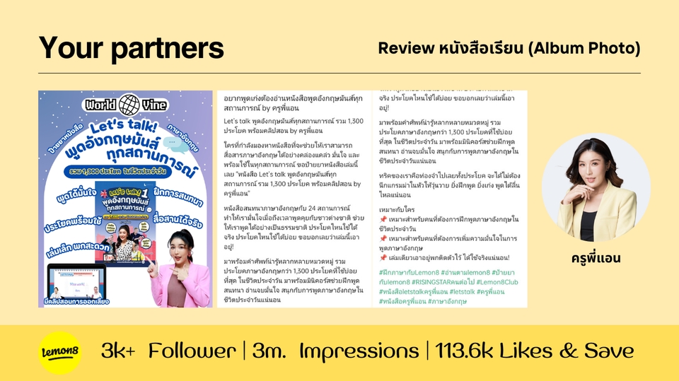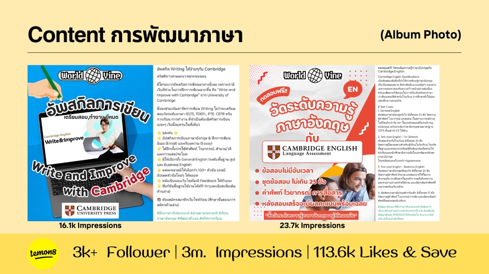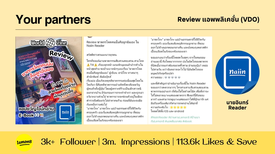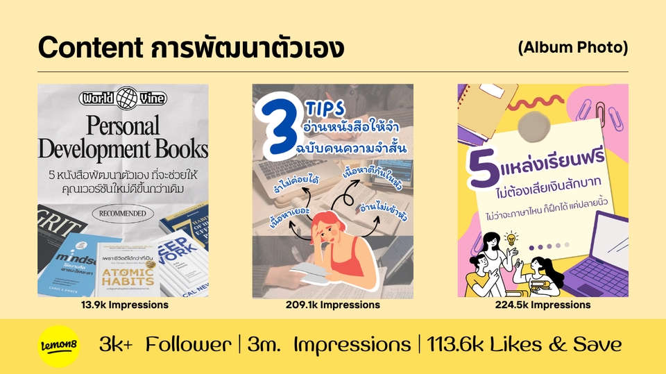 ทำยังดี! คิด Content ไม่ออก อยากลงแพลตฟอร์มของตัวเองแต่ก็เรียบเรียงไม่ถูก ไม่ต้องคิดเยอะ มาคุยกันก่อนเลย!! รับเขียน Content บทความ ลงแพลตฟอร์ม Instagram Facebook Lemon8 และTwitter สร้างเอกลักษณ์ของคุณในแบบเฉพาะตัว โดดเด่นเข้าใจง่ายไม่เหมือนใคร พร้อมภาพประกอบที่เข้าถึงกลุ่มเป้าหมาย ด้วยการเขียน SEO แบบคนรุ่นใหม่ไฟแรงเฟ่ออออออ🔥 ⭐️ Rate Card + Conditions 🍋 Lemon8 - 3000+ Followers / Like & Saves 113.4k / Impressions 3M (อัพเดคล่าสุด 1 เมษายน 2568) 🗂️ไฟล์ที่คุณจะได้รับ - ไฟล์เนื้อหาบทความ Goofle Doc - ไฟล์ภาพประกอบบทความ Jpeg, PNG 🖌ถนัดการเขียน - Tie-in สินค้า บริการ สถานที่ แบบภาษาเข้าใจง่าย - ไลฟ์สไตล์ การใช้ชีวิตฉบับคนเรียล ๆ - ความรู้ทั่วไป เรื่องใหม่ ๆ ที่อยากแชร์ - เทคนิคการเรียน/การทำงาน เพิ่มศักยภาพในการพัฒนาตนเอง - รีวิวซีรี่ย์ ภาพยนตร์ หนังสือ แอพพลิเคชั่น เกม เป็นต้น - สินค้า สถานที่ ผลิตภัณฑ์ ความงาม ผลงาน https://s.lemon8-app.com/s/eUwhwZmrQR 💝 สามารถสอบถามพูดคุย ก่อนได้นะคะ 💝 ขั้นตอนการทำงาน 1. พูดคุยรายละเอียด ลักษณะสินค้าและความต้องการของลูกค้า เช่น รายละเอียดสินค้าหรือเนื้อหาของงาน, ความต้องการที่อยากให้เน้นเป็นพิเศษ, รูปแบบ Mood&Tone ของสินค้าหรือเนื้อหา 2. สรุปรายละเอียด เพื่อให้ฟรีแลนซ์ส่งใบเสนอราคา 3. ฟรีแลนซ์ดำเนินงาน และส่งมอบงานผ่านระบบ 4. ลูกค้าตรวจสอบ/แก้ไขผลงาน เพื่ออนุมัติผลงาน
