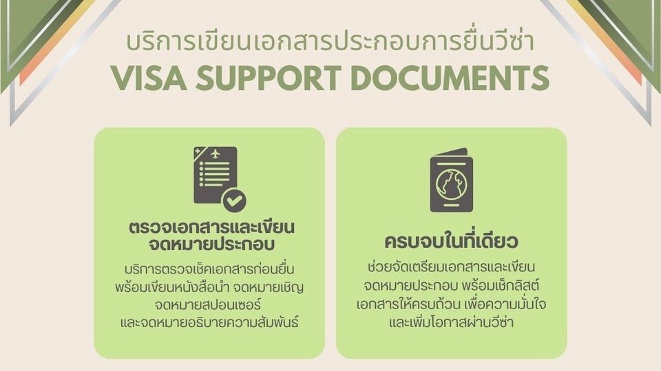 - • เอกสารเขียนใหม่ทั้งหมด พร้อมใช้แนบยื่นวีซ่า