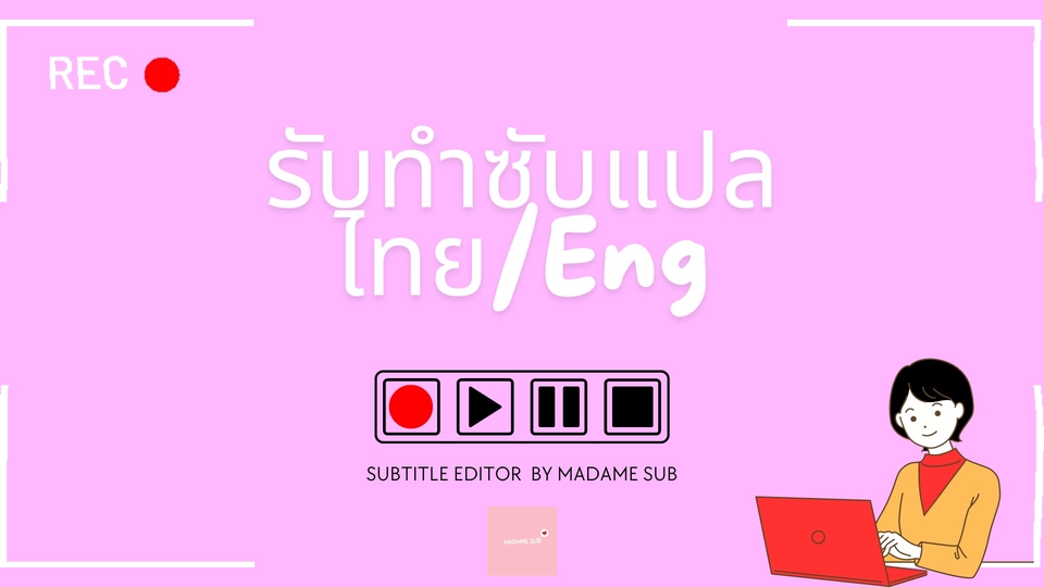 รับแปล ใส่ซับ ฝังซับ รับทำซับทั้งไทยและอังกฤษ รับแปลซับ Eng-TH (ต้องมีซับภาษาอังกฤษมาให้) ราคาขึ้นอยู่กับความยาวคลิป และระยะเวลาในการทำ ติดตามดูผลงานได้ที่ : https://www.youtube.com/@madamesub6106 ขั้นตอนการทำงาน 1. แจ้งรายละเอียดของงาน เช่น ความยาวคลิปวิดีโอ คำบรรยาย รูปแบบตัวอักษร ขนาด สี 2. ส่งไฟล์วิดีโอต้นฉบับ ไฟล์คำบรรยายที่ต้องการให้ใส่ และตกลงราคาและระยะเวลา 3. เริ่มปฏิบัติงาน 4. ส่งงานให้ลูกค้าตรวจ หากมีการแก้ไขเล็กน้อยยินดีแก้ให้ฟรี