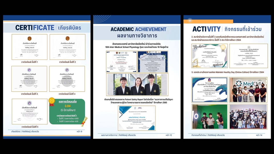 รับออกแบบ Portfolio ตรงตามข้อกำหนดของคณะ / สาขา หรือมหาวิทยาลัยที่ลูกค้า ต้องการสมัคร มีประวัติ และผลงานครบถ้วน กระชับ เข้าใจง่าย สร้างสรรค์ น่าสนใจ - รับออกแบบ Resume เขียนกระชับ ได้ใจความ ความคิดสร้างสรรค์ ตามที่ต้องการ **การเตรียมข้อมูลสำหรับการออกแบบ -รูปภาพคนทำพอร์ต (รูปเดี่ยว) จำนวน 5 รูป **ระบุรูปที่ต้องการนำมาทำปก Portfolio 1 รูป -เตรียมรูปเดี่ยวหรือกลุ่ม เพื่อใช้ประกอบกับประวัติและข้อมูลอื่นๆ -เตรียมรูปภาพกิจกรรมต่าง ๆ ที่เคยเข้าร่วม พร้อมระบุรายละเอียดกิจกรรมนั้นๆอย่างครบถ้วน -เตรียมภาพผลงานหรือเกียรติบัตรต่าง ๆ พร้อมระบุรายละเอียดกิจกรรมนั้นๆ ⏰ ระยะเวลา 3-5 วัน (นับจากวันที่ส่งข้อมูลครบถ้วนแล้ว) 🛠 แก้งาน ได้ในส่วนของคำผิดหรือเพิ่มเติมข้อมูล (เพราะรูปแบบจะต้องโอเคก่อนเริ่มทำทุกส่วน) รายละเอียดราคาเพิ่มเติม Portfolio - งานรีบ งานด่วน ต้องการรับงานก่อนกำหนดส่งงาน คิดเพิ่มงานละ +200 - แก้ไขงานได้ 3 ครั้ง ครั้งต่อไปละ +100 Resume Thai - งานรีบ งานด่วน ต้องการรับงานก่อนกำหนดส่งงาน คิดเพิ่มงานละ +200 - แก้ไขงานได้ 3 ครั้งครั้งต่อไปละ +100 ขั้นตอนการทำงาน 1. แจ้งประเภทงานที่ลูกค้าต้องการจ้าง Portfolio & Resume 2. เลือก Template ที่ต้องการ พร้อมระบุโทนสี ข้อความ รูปภาพ และไฟล์งานที่ต้องการ (สามารถแนบ Ref ที่ชื่นชอบ) 3. จากนั้นทางเราจะออกใบเสนอราคา ให้ลูกค้าชำระเงินเข้าระบบ เพื่อนัดหมายวันเริ่มทำงาน 4. เมื่อชำระเงินเรียบร้อยแล้ว ทางเราจะเริ่มงานได้ทันที ตามวันนัดหมาย 5. ทางเราจะทำงานตามเวลาที่กำหนดไว้ เมื่อเสร็จเรียบร้อย จะส่งให้ลูกค้าตรวจสอบความถูกต้องของแบบและข้อมูลต่างๆ 6. ลูกค้าสามารถแก้ไขงานได้ ตามความต้องการของลูกค้า และทางเราจะทำการเตรียมไฟล์งานจริง 7. เมื่อปรับแก้ไข งานออกแบบตามความต้องการของลูกค้าเรียบร้อยแล้ว ทางเราจะทำการเตรียมไฟล์งานจริง เพื่อจัดส่งให้ลูกค้า ภายใน 1 วัน หลัง Comfirm แบบ 8. เมื่อถึงวันส่งมอบงาน ลูกค้าจะต้องอนุมัติจบงานและรีวิวงานให้เรียบร้อย 9. ทางเราจะอัพโหลดและจัดเรียงไฟล์งาน ลูกค้าสามารถรีเควช ช่องทางการรับไฟล์งานได้ เช่น Email , Google Drive หรือช่องทางอื่นๆ ที่ลูกค้าสะดวก
