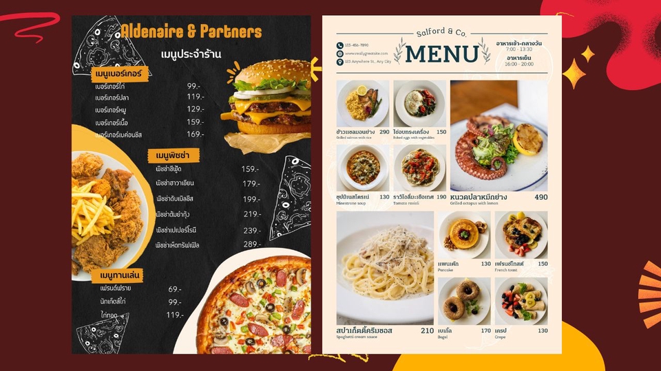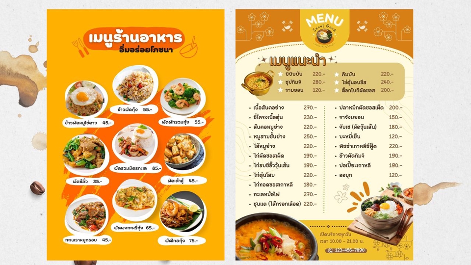 รูปเล่มเมนูอาหาร เริ่มต้นขนาด A4 (2 หน้า)