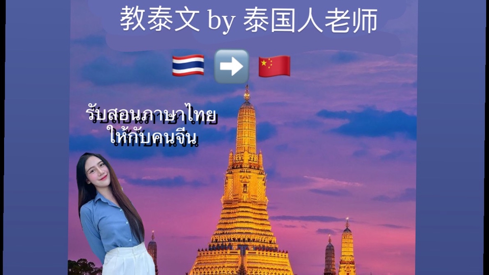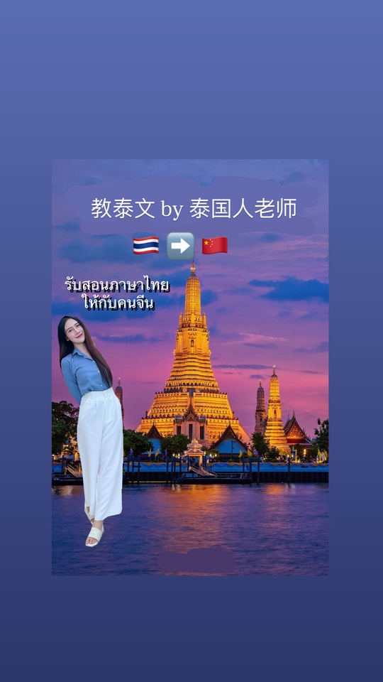 สอนภาษา: ภาษาไทยสำหรับผู้เริ่มต้น – ระดับสูงให้คนจีนผู้ที่ต้องการเรียนภาษาไทย สอนแบบ: ตัวต่อตัว / ออนไลน์ / ออฟไลน์ • สามารถสื่อสารภาษาจีนในชีวิตประจำวันได้ • มีประสบการณ์ช่วยสอนเพื่อนคนจีนหรือคนรู้จักเรียนภาษาไทย • เข้าใจความแตกต่างทางวัฒนธรรมไทย-จีน ทำให้สอนเข้าใจง่าย วิธีการสอน: -เรียนภาษาไทยผ่านบทสนทนาจริงในชีวิตประจำวัน -เน้นฟัง พูด อ่าน เขียน ครบทุกทักษะ -ปรับสไตล์การสอนตามเป้าหมายผู้เรียน เช่น ท่องเที่ยว, ธุรกิจ, ชีวิตประจำวัน จุดเด่น: -ใช้ความรู้ภาษาจีนอธิบายภาษาไทย ทำให้เรียนง่ายและจำไว -สอนสนุก ไม่เครียด และมีเทคนิคจำศัพท์/ไวยากรณ์ -พร้อมช่วยผู้เรียนสอบวัดระดับภาษาไทยหรือใช้ในงาน