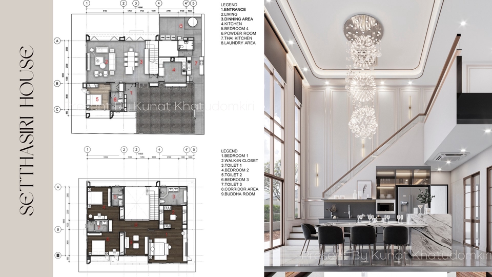 150 ตรม. | สำรวจหน้างานทั้งก่อนและหลังก่อสร้าง+ออกแบบ 3D render + เขียนแบบก่อสร้าง