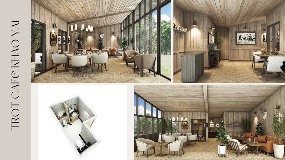 ออกแบบภายใน Interior Design และภาพรวม Exterior บรรยากาศภายนอก 3D & 2D โดยทีมงานมืออาชีพประสบการณ์ 10 ปี ออกแบบตามความต้องการและบรีฟของลูกค้า สไตล์ Loft โมเดิร์น มินิมอล มูจิ Contemporary Japandi หรืออื่นๆ ลูกค้าสามารถแจ้งสไตล์ของร้าน แบรนด์ และ CI ของแบรนด์เพื่อให้การออกแบบเข้ากับธีมมากที่สุดได้ Program: AutoCAD, 3DMax,Adobe. รายละเอียดงานที่จะได้รับ 1. ไฟล์ภาพ PRESPECTIVE ภายนอก จำนวน 2-3 ภาพ (.JPG) 2. ไฟล์ภาพ PRESPECTIVE ภายใน จำนวน 4-5 ภาพ (.JPG) 3. ผังพื้น (.pdf) 4. รูปด้าน, รูปตัด (.pdf) 5. material board วัสดุที่ใช้ (.JPG) 6. ประมาณราคาค่าก่อสร้างต่อตารางเมตรให้ลูกค้าใช้เปรียบเทียบผู้รับเหมา ขั้นตอนการทำงานออกแบบ 1. Briefing กับลูกค้า และขอข้อมูลเบื้องต้นเพื่อประกอบการขึ้นแบบ เช่น แบบแปลนทางสถาปัตยกรรม งานระบบ 2. Site survey สำรวจหน้างาน ฟรี ในพื้นที่กรุงเทพมหานคร ในกรณีสำรวจหน้างานต่างจังหวัด จะมีการคิดค่าบริการเพิ่มเติมตามจริง 3. วิเคราะห์พื้นที่ มู้ด วางคอนเซ็ป และทำ Preliminary Design เพื่อเสนอลูกค้า และแก้ไขเมื่อได้รับ comment จากลูกค้า 4. Final Presentation ส่งผังพื้นโครงการ ภาพ 3D และ 2D บรรยากาศที่ใกล้เคียงสิ่งที่จะเกิดขึ้นจริง( Interior & Exterior Perspective Final Rendering) 5. ส่งรายการประเมินราคาค่าก่อสร้างหลังจากที่ลูกค้าอนุมัติงานออกแบบ 6. ตรวจหน้างาน ฟรี 1 ครั้ง สำหรับแพ็คเกจ 100 ตารางเมตร
