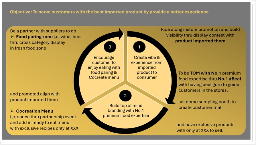 1.วางแผนกิจกรรม Trade Marketing และ Promotion Campaign เพื่อกระตุ้นยอดขาย เพิ่มการรับรู้แบรนด์ และสร้างความสัมพันธ์ที่ดีกับคู่ค้า 2.วิเคราะห์ข้อมูลตลาดและคู่แข่ง เพื่อพัฒนาแผนการตลาดที่เหมาะสม ขั้นตอนการทำงาน 1. ปรึกษาและทำความเข้าใจความต้องการของลูกค้า 2. ทำการวิเคราะห์ตลาดและคู่แข่งเพื่อระบุโอกาสและความท้าทาย 3. การกำหนดเป้าหมายและกลยุทธ์ร่วมกับลูกค้าในการกำหนดเป้าหมายทางการตลาดที่ชัดเจนและวัดผลได้ 4. วางแผนกลยุทธ์ Trade Marketing Plan ที่เหมาะสมกับเป้าหมายและงบประมาณ 5. ส่งมอบ Trade Marketing Plan และแนวทางการติดตามผล