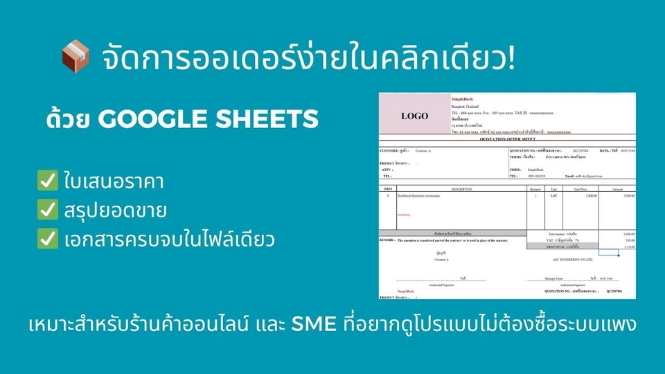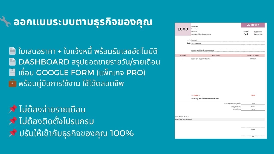 ระบบจัดทำใบเสนอราคา / ใบแจ้งหนี้ / ใบเสร็จ แบบมืออาชีพ ด้วย Excel หรือ Google Sheets