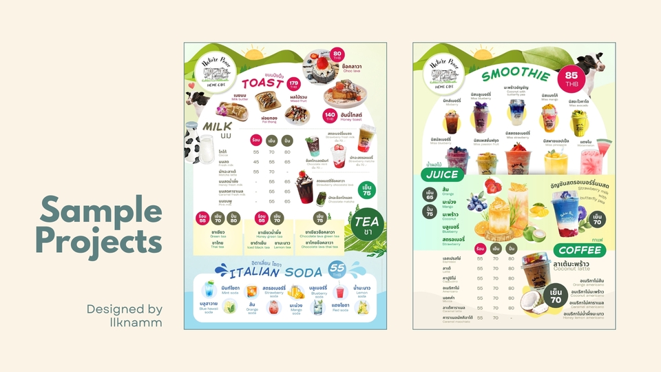 ฿1,800เมนูอาหารและเครื่องดื่ม 2 แผ่น หรือหน้า–หลัง ---- ✅ดีไซน์ตามสไตล์ร้าน (Minimal / Modern / Premium) ✅จัดวางเนื้อหาให้อ่านง่าย ✅ไฟล์งาน .PDF / .JPG พร้อมพิมพ์ --- รับผลิตจากโรงงาน ราคายังไม่รวมค่าผลิต