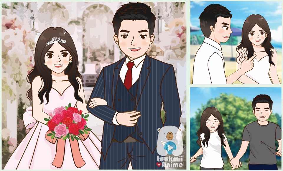 บริการจัดทำ การ์ตูนพรีเซนเทชั่นงานแต่ง (Wedding Animation) เพื่อถ่ายทอดเรื่องราวความรักของคุณในรูปแบบการ์ตูนอนิเมชั่นน่ารักๆ มีรูปแบบคาแรคเตอร์ให้เลือกหลายสไตล์ มีแพ็คเกจให้เลือกตามความเหมาะสมของเรื่องราว สามารถเพิ่มภาพถ่ายโมเม้นท์พิเศษๆของบ่าวสาวได้ ขั้นตอนการทำงาน 1. ขั้นตอนที่ 1 ออกแบบคาแรคเตอร์บ่าวสาว ตามภาพที่ลูกค้าส่งมาให้ (ตามสไตล์แต่ละลายเส้น) เงื่อนไขการแก้ : แก้ไขได้ 2 ครั้ง 2. ขั้นตอนที่ 2 ร่างสตอรี่บอร์ดจากเรื่องราวที่บ่าวสาวส่งมาให้ ภายในระยะเวลาตามแพคเก็จ เงื่อนไขการแก้ : บรีฟเพิ่มเติมแก้ไขได้ตามต้องการ และต้องคอนเฟิร์มก่อนลงมือวาดจริง 3. ขั้นตอนที่ 3 ลงมือทำแอนิเมชั่นตั้งแต่ต้นยันจบตามสตอรี่บอร์ดและบรีฟ ตัดต่อใส่เสียงและตัดต่อรวมกับสไลด์ภาพตามแพคเก็จ อัพโหลดลง Youtube ให้ลูกค้าตรวจทาน เงื่อนไขการแก้ : แก้ได้ในส่วนของเพลงประกอบ เสียงพากย์(ถ้าทางเราผิดพลาด) ข้อความในพรีเซนเทชั่น 4. ขั้นตอนที่ 4 เช็คงานหลังแก้ไข คอนเฟิร์ม