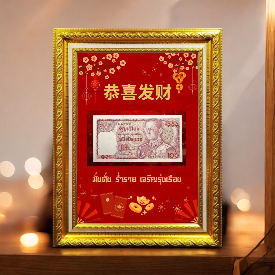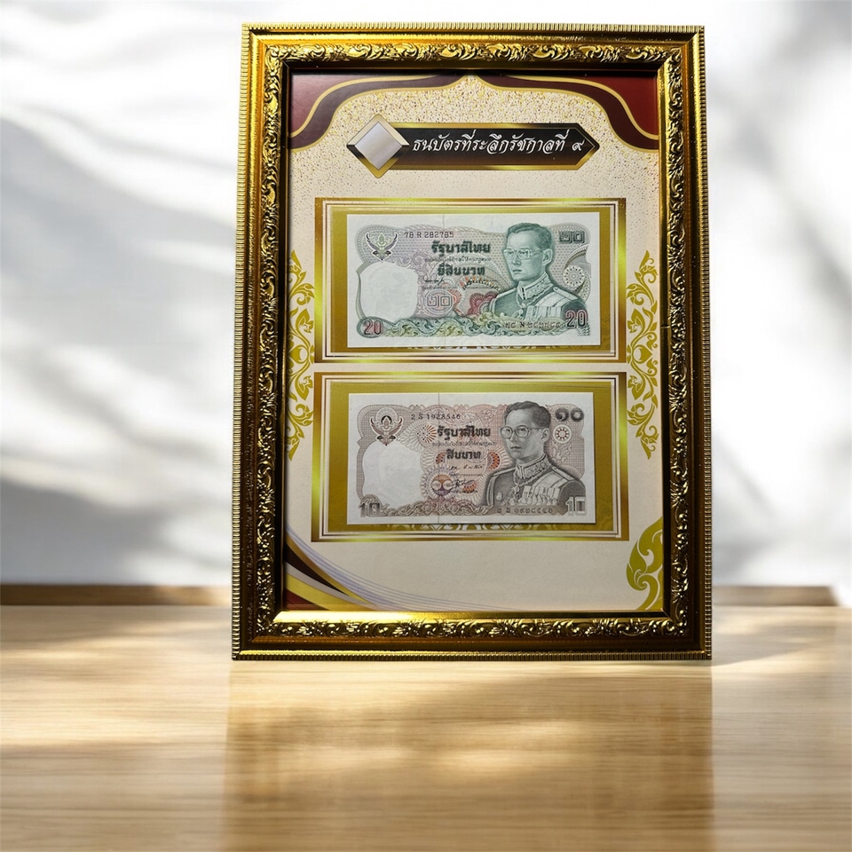 ธนบัตรใส่กรอบรูป ขนาดA4 ด้านหน้ากระจกหนา 2 มิล สามารถวางตั้งได้ มีหูแขวนที่ผนังกำแพงได้