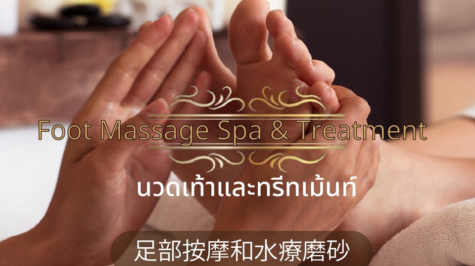 "บริการนวดฝ่าเท้าเพื่อผ่อนคลาย เหมาะสำหรับท่านที่ยืนเป็นเวลานาน จากพนักงานที่มีความชำนาญ และมีประสบการณ์ในการนวดฝ่าเท้า พนักงานทุกคนผ่านการสอบและมีใบรับรอง เริ่มต้นจากการขัดเท้าและต้นขาด้วยสครับครีม บำรุงล้ำลึก ลดรอยหยาบกร้านบริเวณส้นเท้า ตามด้วยการนวดกดจุดสะท้อนฝ่าเท้า กระตุ้นระบบปลายประสาทที่เท้า ช่วยให้ผ่อนคลายทั้งร่างกาย นวดกดจุดที่ฝ่าเท้า ซึ่งเป็นจุดศูนย์รวมของร่างกาย การนวดคลายกล้ามเนื้อเป็นการปรับสมดุลในร่างกาย เนื่องจากฝ่าเท้ามีจุดสะท้อนของอวัยวะภายในร่างกาย และการนวดกดจุดที่ฝ่าเท้า ช่วยให้ระบบการไหลเวียนของอวัยวะภายในร่างกายต่างๆ ทำงานได้ดีขึ้นขับถ่ายของเสีย"