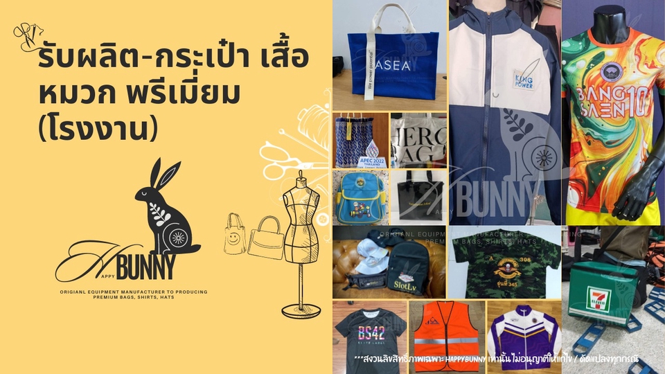 รับผลิต-กระเป๋า เสื้อ หมวก พรีเมี่ยม (โรงงาน) Manufacturing bags, shirts, hats (Factory)
