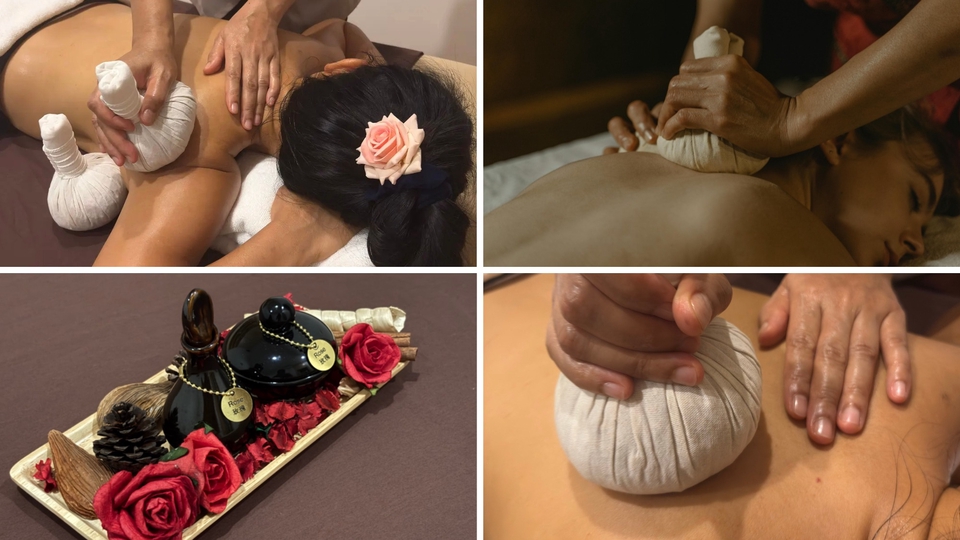 Relaxing aroma oil massage combined with warm herbal compress to relieve muscle tension and enhance deep relaxation
