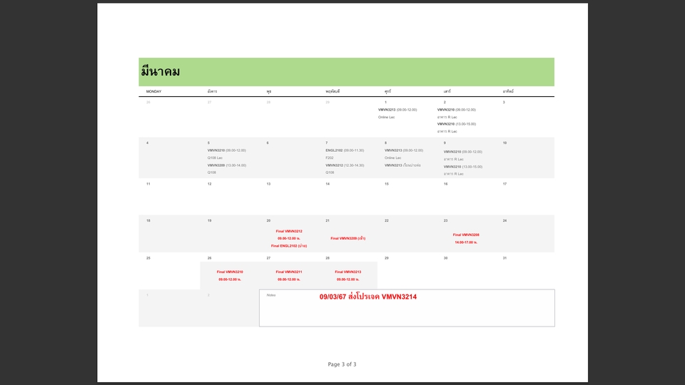 รับทำตารางเรียนมหาวิทยาลัย - พิมพ์ลงในปฏิทินในแต่ละเดือนตั้งเริ่มเรียนจนถึงสอบปลายภาคของเทอม 2 - ผู้จ้างต้องมีประมวลรายวิชาของแต่วิชานั้นๆ - รอรับได้ภายใน 24 ชม. ขั้นตอนการทำงาน 1. พูดคุยรูปแบบปฏิทินที่ต้องการ และผู้จ้างส่งประมวลการสอน 2. นำวันที่และเวลาในประมวลการสอนลงปฏิทิน 3. ผู้จ้างรอรับงาน