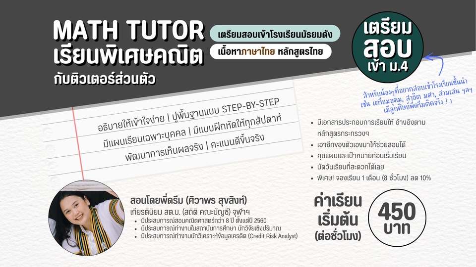 MATH TUTOR เรียนพิเศษคณิต กับติวเตอร์ส่วนตัว เพื่อสอบเข้าโรงเรียนดัง ม.4 / เตรียมอุดมศึกษา