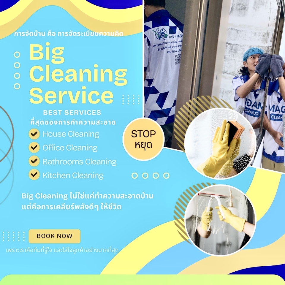 มาจิค คลีนนิ่ง บริการทำความสะอาด มีความพร้อมให้บริการท่านด้วยแม่บ้านคุณภาพสูง มีทั้งพ่อบ้านและแม่บ้าน เรามีจุดเด่น อุปกรณ์ทันสมัยครบครันพร้อมกับทุกหน้างาน ทุกพื้นที่ และในด้านการเทรนงานได้ 100% บริการหลังการขายแบบ เน้นทำความสะอาดครั้งใหญ่และทั่วถึงทั้งพื้นที่ อุปกรณ์ทำความสะอาดอย่างครบครัน ประเมินหน้างานฟรี พูดคุยง่าย มาจิค คลีนนิ่ง ตัวช่วยแก้ปัญหาทุกจุด บริการที่ดี พร้อมใส่ใจทุกรายละเอียด