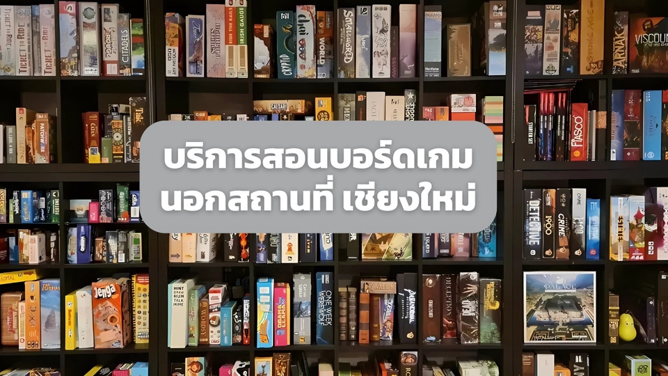 บริการให้เช่าบอร์ดเกม และรับสอนบอร์ดเกมในและนอกสถานที่ ไม่ว่าจะเป็นปาร์ตี้เกม เกมเนื้อเรื่อง เกมเกตเวย์ และเกมยูโร มีเกมในเลือกมากกว่า 300 เกม เกมไหนที่ไม่มีเราพร้อมหามาให้คุณเล่นได้ครับ สามารถทักมาสอบถามรายละเอียดได้ครับ ในสถานที่ : อยู่โซนเซนทรัลเฟสติวัล เชียงใหม่ นอกสถานที่ : ได้ทุกพื้นที่ในจังหวัดเชียงใหม่ รัศมีไม่เกิน 50 กิโลเมตรจากตัวเมือง สามารถนัดเล่นที่คาเฟ่หรือบ้านลูกค้าก็ได้ครับ ** เจ้าของอยู่เชียงใหม่ ** ขั้นตอนการทำงาน 1. นัดหมายกับลูกค้า และส่งใบเสนอราคา 2. ถึงสถานที่ พร้อมสร้างบรรยากาศให้สนุกสนาน
