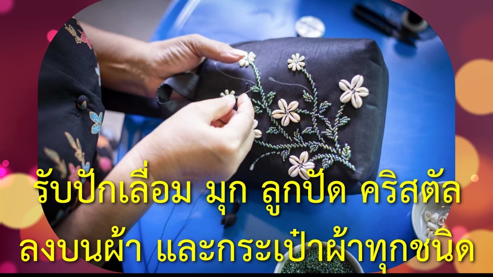 รับปักเลื่อม มุก ลูกปัด คริสตัล ลงบนผ้าและกระเป๋าผ้าทุกชนิด โดยผู้เชี่ยวชาญงานปัก มากกว่า 20 ปี