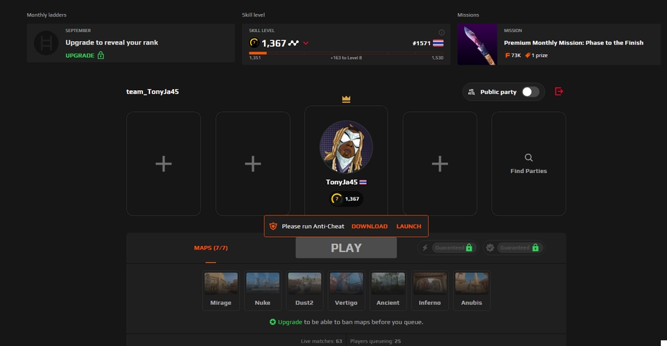 ฿500faceit lv5+ 150elo/500bath +150elo จาก lvเดิมของลูกค้า streaming + 10%