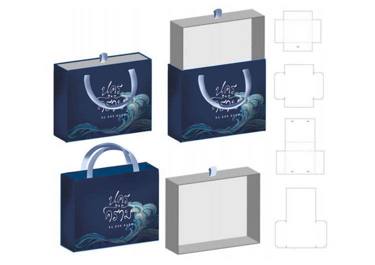 เป็นงานที่ทำช่วงโปรเจคปี2 โดยการออกแบบแพ็คเกจเพื่อยกระดับสินค้าผ้าคราม จุดเด่นคือด้านลายไทย และสีที่เป็นเอกลักษณ์สื่อถึงผ้าคราม ชื่อแบรนด์ที่ตั้งว่านครคราม เป็นเพราะเลือกที่จะทำเกี่ยวกับผ้าครามจังหวัดสกลนคร จึงได้มีชื่อว่านครคราม ขั้นตอนการทำงาน 1. ระบุสิ่งที่ลูกค้าต้องการ คุยกันเรื่องรายละเอียดต่างๆ 2. เริ่มออกแบบงานให้ลูกค้า 3. ส่งให้ลูกค้าเช็คและนำมาปรับแก้ 4. ส่งงาน