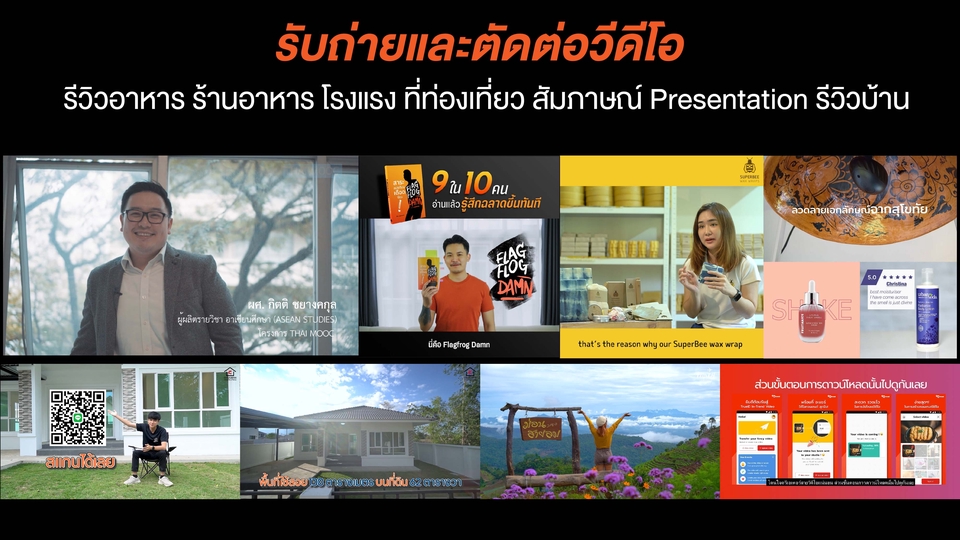 ถ่ายวีดีโอและตัดต่อ รีวิวอาหาร ร้านอาหาร โรงแรง ที่ท่องเที่ยว สัมภาษณ์ Presentation รีวิวบ้าน
