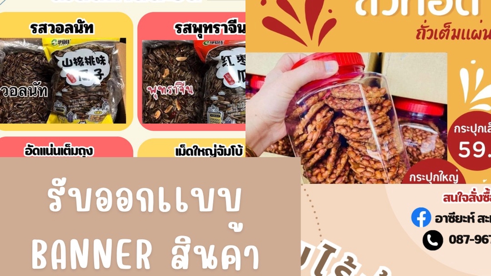 รับออกเเบบเบบนเนอร์โฆษณาสินค้า ทั้งของกินเเละของใช้ เเค่ลูกค้าส่งรูปมาให้เราเเล้วเราจะออกเเบบตามที่ลูกค้าบรีฟมาครับ ราคาของภาพขึ้นอยู่กับรายละเอียด เริ่มต้นที่ภาพละราคาหลักสิบครับ ขั้นตอนการทำงาน 1. รับงาน 2. ทำใบเสนอราคา 3. พูดคุยรายละเอียดของงาน 4. ทำงาน 5. ส่งงาน 6. เเก้ไขงาน 7. ส่งงานที่เเก้ไข 8. เสร็จสิ้น