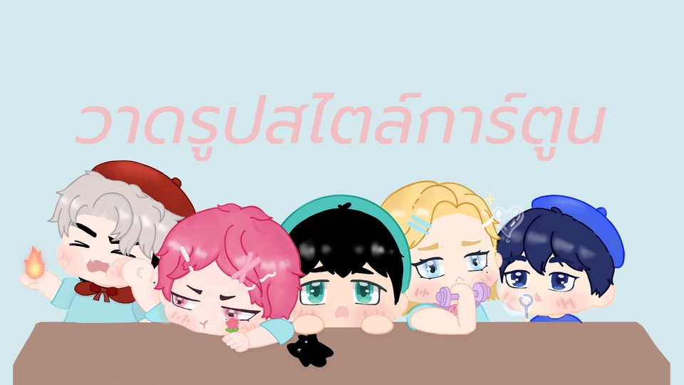 ชิ้นงาน - ระยะเวลาในการวาด 1-4 วันต่อภาพต่อคิว - งานที่จะได้รับเป็นไฟล์ png&jpeg dpi 300 สี CYMK - แก้ไขงานได้ 2 ครั้ง (เกินจากนี้ครั้งละ 30 บาท) - ส่งงานทาง Google drive (ผลงานจะเก็บไว้ไม่เกิน 3 เดือน หลังจากนี้จะไม่สามารถโหลดไฟล์ได้) ขั้นตอนการทำงาน 1. รับบรีฟ - แจ้งรายละเอียดตัวละคร เช่น ทรงผม สีผิว สีหน้า ฯลฯ -แจ้งว่า ใช้ส่วนตัว/เชิงพาณิชย์ 2. ส่งภาพร่าง (สามารถแก้ไขได้ 2 ครั้ง) 3. หลังจากสรุปภาพร่างที่ต้องการตามบรีฟได้ จะเก็บรายละเอียดในภาพ 4. ส่งงาน final เป็น link google drive (ผลงานจะเก็บไว้ไม่เกิน 3 เดือน หลังจากนี้จะไม่สามารถโหลดไฟล์ได้)