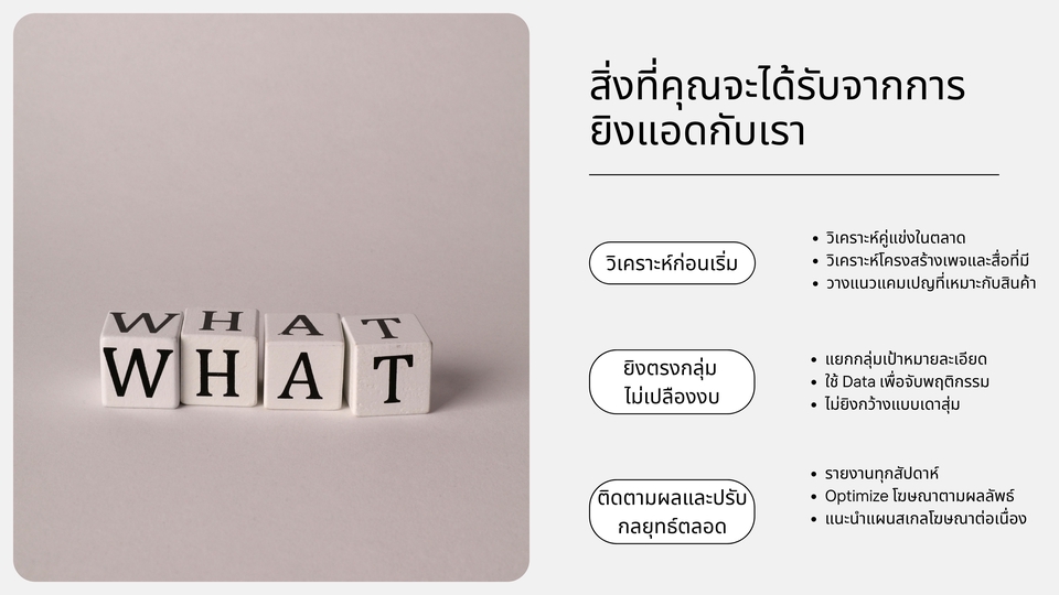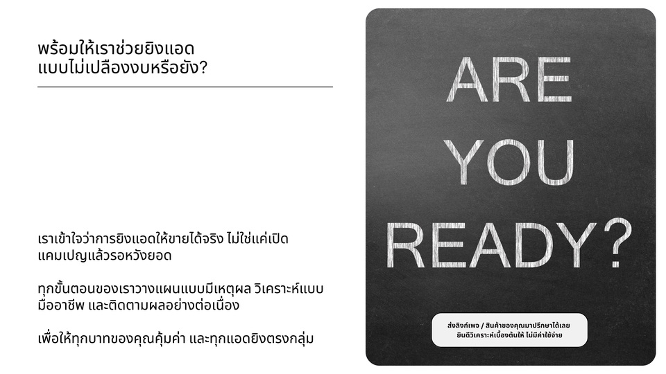 - • วิเคราะห์ก่อนยิง พร้อมเสนอแผนให้ดูก่อนเริ่ม