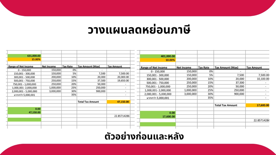 ฿500ได้รับไฟล์รายงานการวางแผนลดหย่อนภาษี - Fact finding รายได้ระหว่างปี สิทธิลดหย่อนที่มีอยู่แล้ว - สอบถามเป้าหมาย การวางแผนการเงินที่ผ่านมา - วางแผนค่าลดหย่อนให้ตรงตามเป้าหมาย