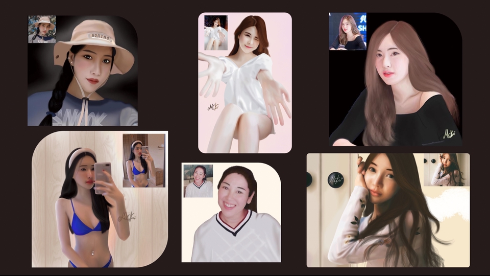Portrait Digital Art วาดจากรูปที่ลูกค้าให้มา ส่งงานเป็นไฟล์ .png, .jpeg, .pdf ใช้ระยะเวลาปกติ 7-10 วัน ขึ้นอยู่กับความยากง่ายและรายละเอียดของภาพ เลือกสีพื้นหลังเองได้ ขนาด CMYK 6”x 9.5” | sRGB Photo 4”x 6” | sRGB 2048 x 2048 px | P3 2388 x 1668 px ขั้นตอนการทำงาน 1. รับบรีฟจากลูกค้า ส่งรูปภาพที่ต้องการให้วาด 2. ประเมินความยากง่ายและรายละเอียดต่างๆ 3. หลังลูกค้าโอน เริ่มงาน และจะอัพเดทงานให้ดูเรื่อยๆ สามารถสั่แก้ได้ตอนอัพเดทให้ดู 4. ส่งมอบไฟล์งาน เป็น .png, .jpg หรือ.pdf