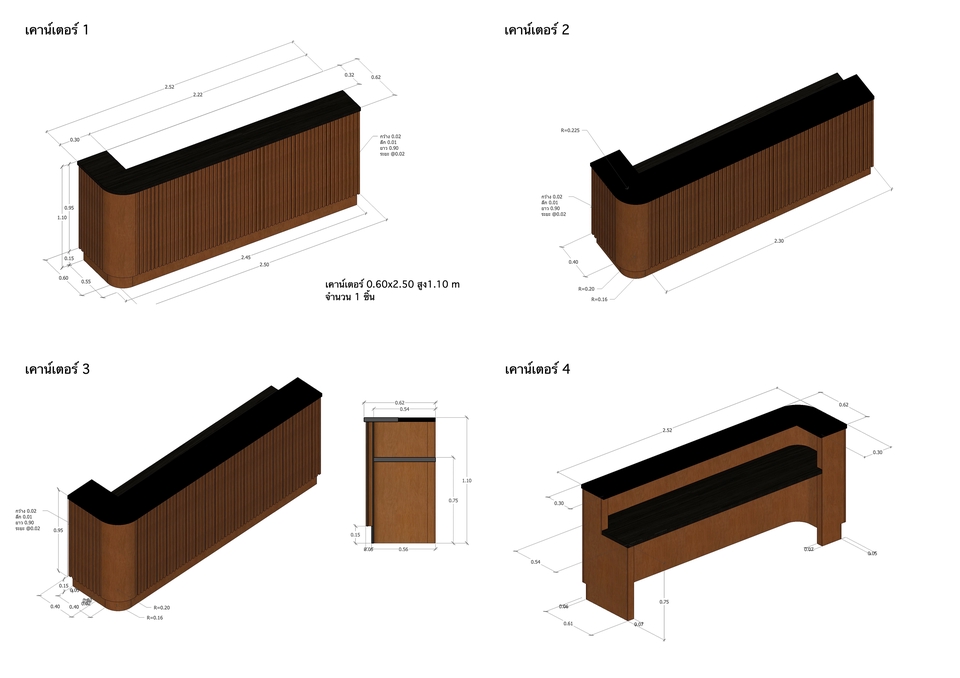 ออกแบบเฟอร์นิเจอร์ ทุกชนิด เช่น โต๊ะ เคาน์เตอร์ ชั้นวางสินค้า ตู้เก็บของ ชั้นวางของ เป็นต้น สไตล์ Mid-Century Modern / Modern / Rustic / Minimal หรือ ตามที่ลูกค้าต้องการ ขั้นตอนการทำงานสำหรับ ออกแบบ เฟอร์นิเจอร์ (ภาพ3D เขียนแบบ เพื่อผลิตชิ้นงานจริง) 1. การวิเคราะห์ชิ้นงาน - ผู้ว่าจ้างส่งรูป Reference เฟอร์นิเจอร์ที่ต้องการ - รูปถ่ายพื้นที่หน้างาน หรือ ขนาดพื้นที่ และมีความชัดเจนของข้อมูล เพื่อให้ออกแบบให้เหมาะสมกับพื้นที่มากที่สุด - Brife งาน ในส่วนของ mood & tone / Detail / Function - หรือลูกค้ามีขนาดที่ต้องการอยู่แล้ว สามารถsketchแบบมาได้เลยครับ - สเปค material วัสดุ หรือเฉดสีที่ต้องการ 2. การออกแบบ/เขียนแบบ - กำหนดระยะเวลาในการทำงาน ออกแบบ - เริ่มการออกแบบ ขึ้นแบบ 3D สำหรับส่งตรวจรอบแรก - แก้ไขงาน ตามที่ลูกค้าพึงพอใจ (ปรับแก้แบบได้ไม่เกิน 2 ครั้ง) - สรุปแบบสุดท้ายที่ต้องการ สัดส่วน material หรือสี - เริ่มทำการเขียนแบบ เพื่อการผลิตงานต้นแบบ - ส่งไฟล์งาน Final ทั้งหมด ภาพ (JPEG) / 3D (skp) / เขียนแบบ (PDF) ขั้นตอนการทำงาน 1. ผู้ว่าจ้างส่งรูป Reference เฟอร์นิเจอร์ที่ต้องการ 2. รูปถ่ายพื้นที่หน้างาน หรือ ขนาดพื้นที่ และมีความชัดเจนของข้อมูล 3. Brife งาน ในส่วนของ mood & tone / Detail / Function 4. กำหนดระยะเวลาในการทำงาน ออกแบบ 5. เริ่มการออกแบบ ขึ้นแบบ 3D สำหรับส่งตรวจรอบแรก 6. แก้ไขงาน ตามที่ลูกค้าพึงพอใจ (ปรับแก้แบบได้ไม่เกิน 2 ครั้ง) 7. สรุปแบบสุดท้ายที่ต้องการ สัดส่วน material หรือสี 8. เริ่มทำการเขียนแบบ เพื่อการผลิตงานต้นแบบ 9. ส่งไฟล์งาน Final ทั้งหมด ภาพ (JPEG) / 3D (skp) / เขียนแบบ (PDF)