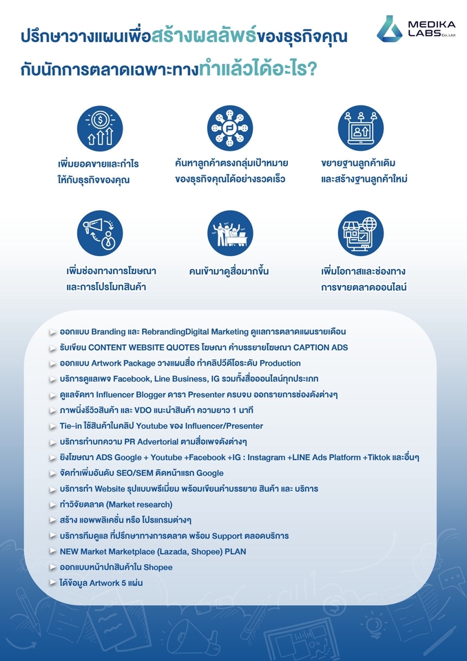 ให้คำปรึกษาวางแผนการตลาดภาพรวมของธุรกิจ ระยะเวลา 30 นาที