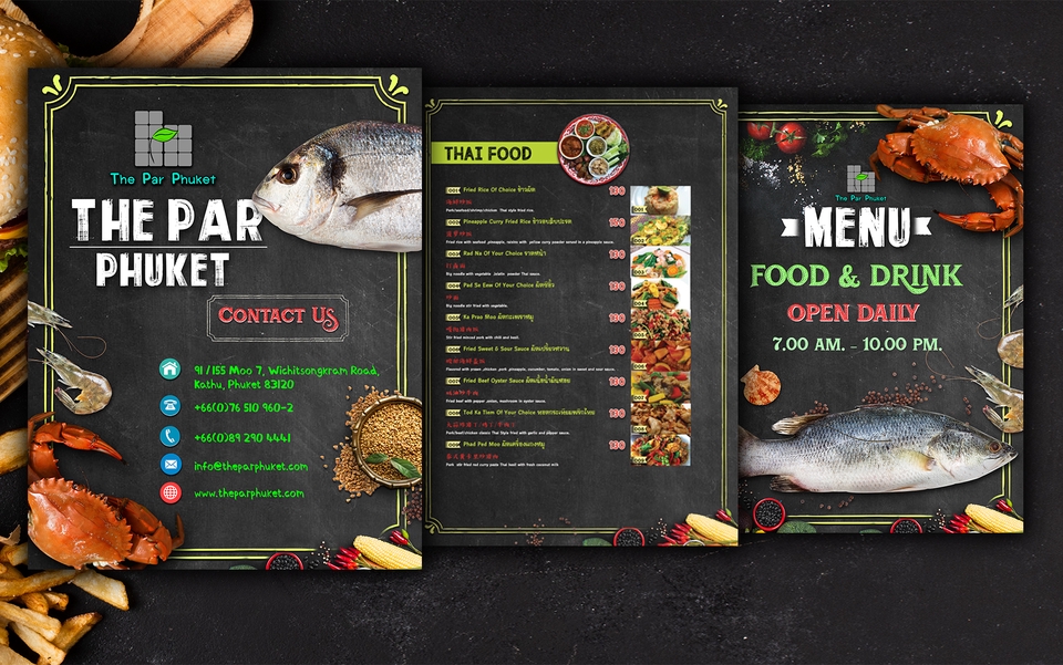 ออกแบบสื่อโฆษณา โบรชัวร์, เมนูอาหาร, นามบัตร, ไวนิล