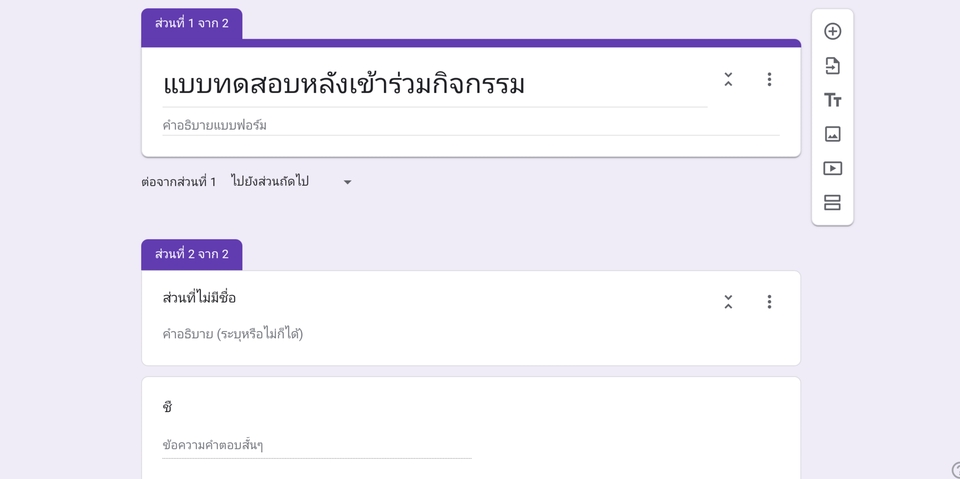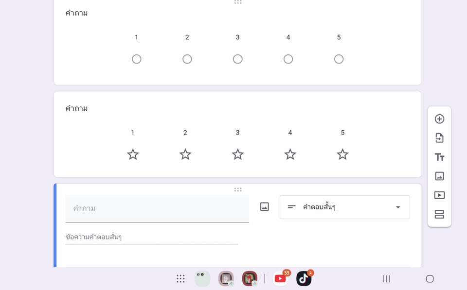 ฿400- สร้างแบบสอบถาม แบบประเมิน แบบสำรวจ google forms ตามลายละเอียดของลูกค้า - ลูกค้าสามารถแก้ได้ไม่เกิน 3 ครั้ง