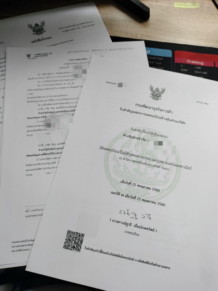 จดเปิดบริษัท แบบออนไลน์ ลูกค้าจะได้รับ -จองชื่อบริษัท -ทำแผนที่(กรณียังไม่มี) -ทำตราประทับ(กรณียังไม่มี) -รหัส E-Filing กรมพัฒนาธุรกิจ -จดภาษีมูลค่าเพิ่ม ออนไลน์ -ไฟล์หนังสือรับรองบริษัท และคัดเอกสารจดเปิด(ไฟล์) -ใบทะเบียนพาณิชย์ ของกรมพัฒนาธุรกิจการค้า ขั้นตอนการทำงาน 1. ตรวจสอบชื่อ 2. จัดทำกรอกข้อมูล กรมพัฒนาธุรกิจการค้า 3. กรรมการลงนามอนุมัติ 4. เจ้าหน้าที่กรมพัฒนาธุรกิจการค้าอนุมัติ 5. ส่งมอบไล์เอกสาร ส่งรหัส e filling 6. ยื่นจดภาษีมูลค่าเพิ่ม 7. จบการทำงาน