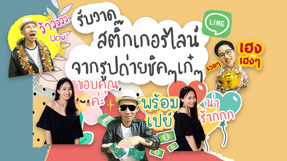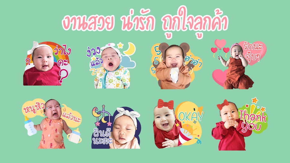 รับทำสติ๊กเกอร์ไลน์จากรูปถ่ายชิคๆเก๋ๆ เป็นสไตล์ในตัวคุณ แนวน่ารัก ชิคๆเก๋ๆคูลๆ จากรูปถ่ายของลูกค้า แฟน เพื่อน หรือสัตว์เลี้ยง ฯลฯ สติ๊กเกอร์ไลน์ภาพนิ่ง 8 ตัว / 1000 บาท (2 วัน) 16 ตัว / 1490 บาท (3 วัน) 24 ตัว / 1890 บาท (4 วัน) 32 ตัว / 2490 บาท (5 วัน) 40 ตัว / 2890 บาท (5 วัน) สิ่งที่ลูกค้าจะได้รับ กรณีลูกค้าจะเอาไปอัพโหลดขึ้นไลน์เอง ทางร้านจะส่งเป็นไฟล์ .png ประกอบด้วย - รูปสติ๊กเกอร์ จำนวนตามแพ๊คเกจที่ลูกค้าเลือก - รูปหน้าสโตร์ 1 รูป - รูปไอคอน 1 รูป รายละเอียดราคาเพิ่มเติม **ถ้าไลน์อนุมัติแล้ว ต้องการแก้ไขเพิ่มทางร้านคิดค่าบริการเพิ่มรูปละ 100 บาท** ** หากต้องการไฟล์ psd.จะคิดค่าไฟล์เพิ่มชุดละ 1500 บาท** ขั้นตอนการทำงาน 1. ลูกค้าเลือกแพ็คเกจจะเอากี่ตัว ระยะเวลาเริ่มหลังจากถึงคิวของลูกค้า 2. ลูกค้าระบุสไตล์ หรือ แบบที่ลูกค้าต้องการ โดยสามารถส่งภาพตัวอย่างสไตล์ที่ชอบมาได้ค่ะ 3. ส่งรูปถ่าย พร้อมคิดคำหรือแคปชั่นที่อยากได้ ถ้าคิดไม่ออกทางร้านคิดให้ฟรีค่ะ 4. ทางร้านส่งผลงานให้ตรวจสอบ (ลูกค้าสามารถแก้ไขได้ 1 ครั้ง) หากเกินทางร้านคิดค่าบริการเพิ่มรูปละ 100 บาท 5. อัพโหลดให้ไลน์พิจารณา ถ้าไม่ผ่านแก้ไขให้ฟรี จนกว่าจะอนุมัติใช้จริง