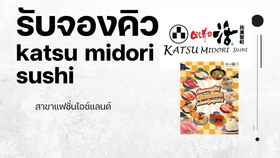 ฿160รับคิวหน้าร้าน + อัปเดตสถานะให้ตลอด A รอบเช้า 10.30-11.30 ราคา 160 บาท B รอบเที่ยง 11.30-13.30 ราคา 250 บาท รับรอบละ 2 ท่าน เท่านั้น