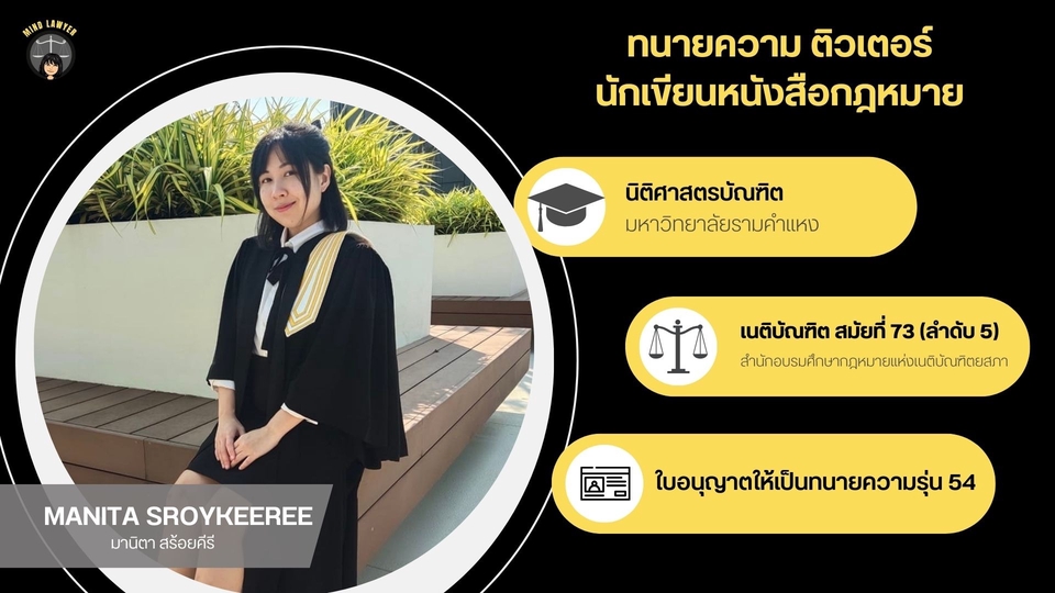 สำนักงานกฎหมายมานิตา พร้อมให้บริการท่าน ‼️ให้บริการทั้งลูกค้าที่เป็นคนไทยและชาวต่างชาติ‼️ 👉🏻ให้คำปรึกษาทางกฎหมาย เช่น ลูกหนี้ไม่ยอมจ่ายต้องทำอย่างไร โดนประจานลงโซเชียลฟ้องได้ไหม 👉🏻รับตรวจสัญญาต่าง ๆ 👉🏻รับร่างสัญญาทุกประเภท เช่น สัญญากู้ยืมเงิน สัญญาเช่าซื้อ สัญญาประนีประนอมยอมความ 👉🏻รับร่างหนังสือกฎหมาย เช่น หนังสือมอบอำนาจ คำร้องทุกข์ หนังสือบอกเลิกสัญญา หนังสือบอกกล่าวทวงถาม ‼️ We provide services for both Thai and foreign clients ‼️ 👉🏻 Legal consultation, such as what to do if a debtor refuses to pay, or whether you can sue someone for defaming you on social media. 👉🏻 Contract review services. 👉🏻 Drafting all types of contracts, such as loan agreements, hire-purchase agreements, and compromise agreements. 👉🏻 Drafting legal documents, such as powers of attorney, complaints, termination notices, etc.
