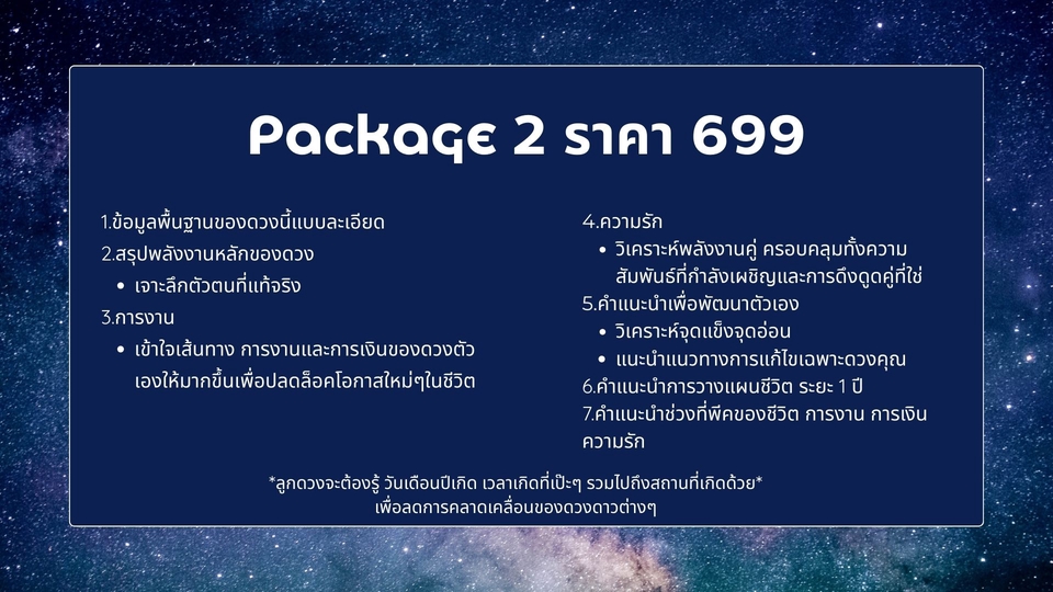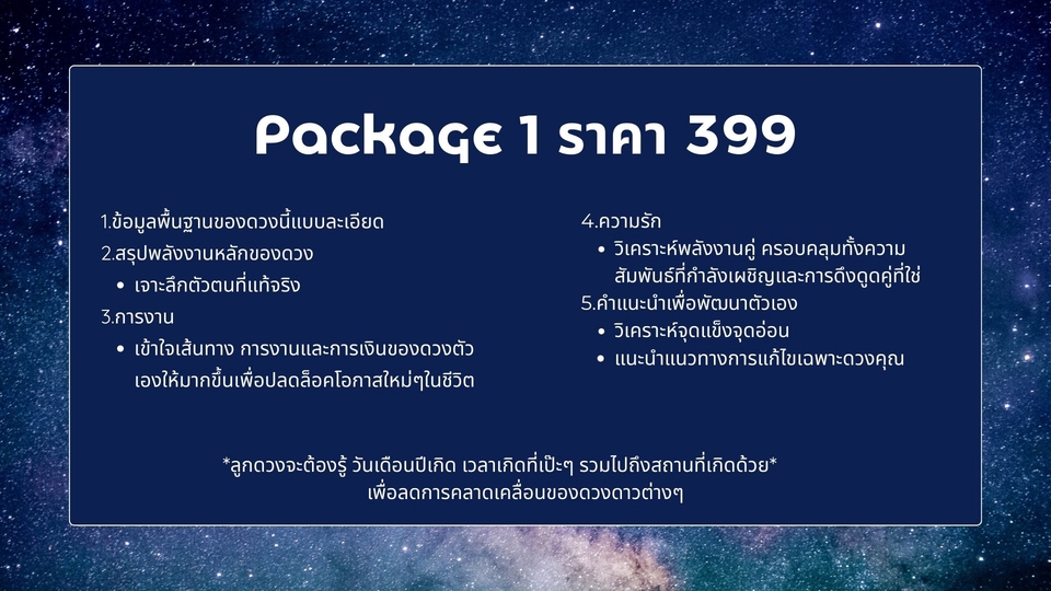 ฿3991.ข้อมูลพื้นฐานของดวงนี้แบบละเอียด 2.สรุปพลังงานหลักของดวง 3.การงาน 4.ความรัก 5.คำแนะนำเพื่อพัฒนาตัวเอง
