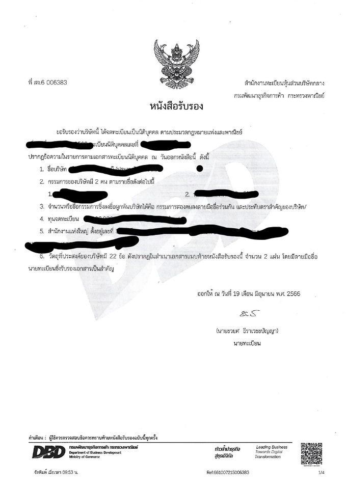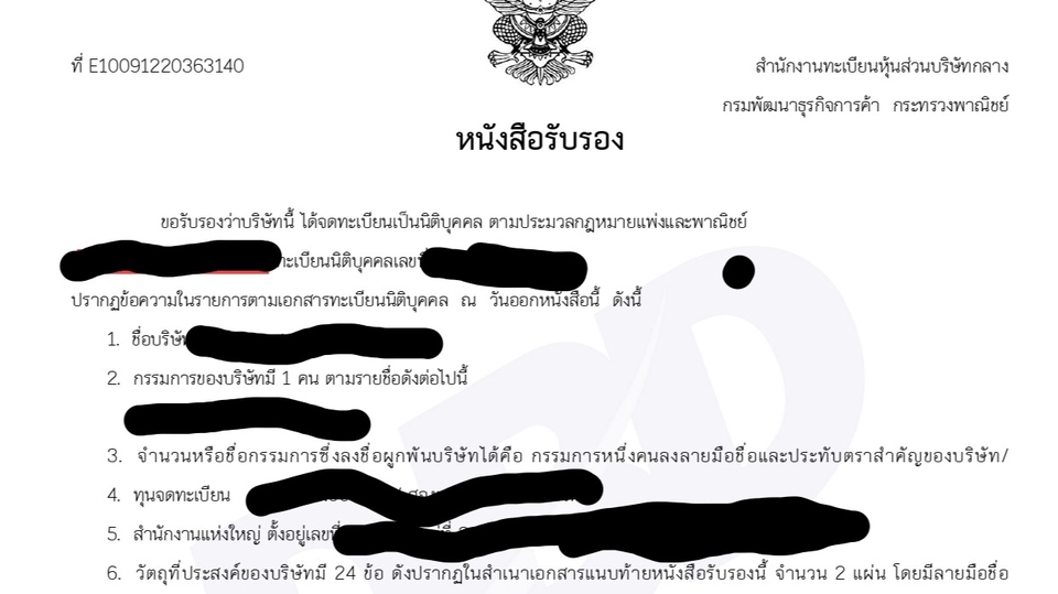 ฿10,000เอกสารรับรองการจัดตั้งบริษัท และเป็นที่ปรึกษาของบริษัทคุณตลอดไป