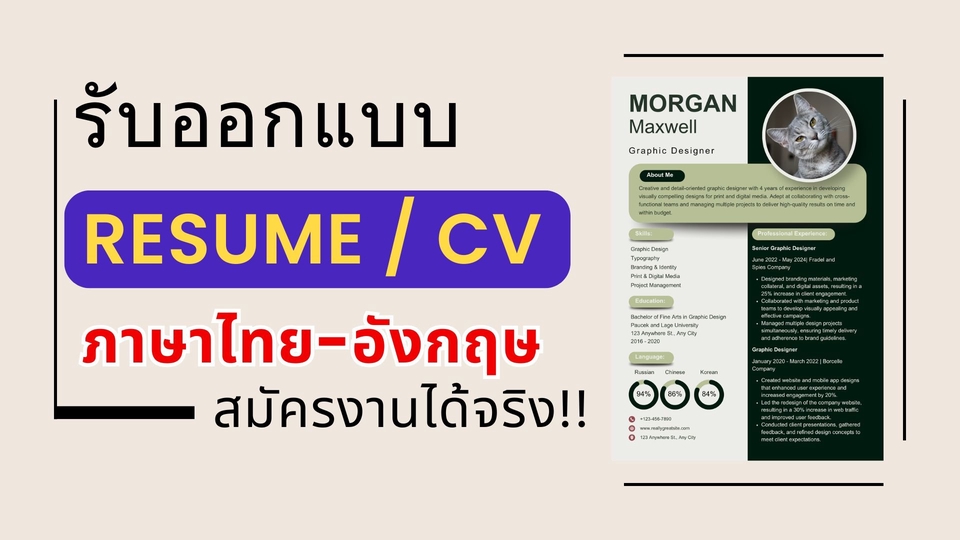 📌ออกแบบ Resume / CV สวยโดดเด่น ภาษาไทย-อังกฤษ สมัครงานได้จริง✅