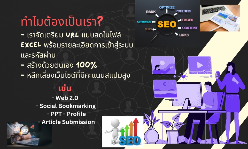 เป็นมืออาชีพที่ผ่านการรับรองจาก Semrush ในฐานะผู้เชี่ยวชาญด้าน SEO ที่มีประสบการณ์ 8 ปี การสร้างลิงก์เป็นปัจจัยสำคัญมากในการทำ Off-Page SEO เพื่อโปรโมตเว็บไซต์ของคุณบน SERP ทุกวันนี้ผู้คนสร้างลิงก์นับพันลิงก์ในราคาที่ต่ำมากซึ่งถือเป็นสแปมโดยสิ้นเชิง ดังนั้นที่นี่เราจึงมอบลิงก์ย้อนกลับที่มีคุณภาพและอันดับสูงแก่ site ของคุณ ซึ่งทำให้หน้า site ของคุณมีอันดับสูงใน Google SERP เราให้บริการสร้างลิงค์ SEO รายเดือนให้กับเว็บไซต์ของคุณ: ซึ่งรวมถึงลิงก์ 500 ลิงก์ที่มี Moz Domain Authority สูงกว่า 60 ไซต์เหล่านี้สามารถจัดทำดัชนีได้อย่างง่ายดายและยังช่วยเพิ่มอันดับไซต์ของคุณอีกด้วย ทำไมต้องเป็นเรา? - เราจัดเตรียม URL แบบสดในไฟล์ Excel พร้อมรายละเอียดการเข้าสู่ระบบและรหัสผ่าน - เราสร้างด้วยตนเอง 100% - เราหลีกเลี่ยงเว็บไซต์ที่มีคะแนนสแปมสูง บริการประกอบด้วย: - Web 2.0 - Social Bookmarking - PPT - Profile - Article Submission งานทั้งหมดเป็นต้นฉบับ (White Hat) และคู่มือ และยังมีรายงานโดยละเอียดเกี่ยวกับสิ่งที่เราทำ ขั้นตอนการทำงาน 1. เราสร้างบทความเป็นภาษาไทยหรืออังกฤษ 2. เราวาง Anchor Text ด้วยตนเองในแต่ละบทความเกี่ยวกับคำหลัก 3. จากนั้นเราจะเผยแพร่บทความทั้งหมดที่มีข้อความ Anchor บนโดเมนอ้างอิง High DA 4. เราจัดทำดัชนีลิงก์ย้อนกลับทั้งหมดโดยใช้ tools
