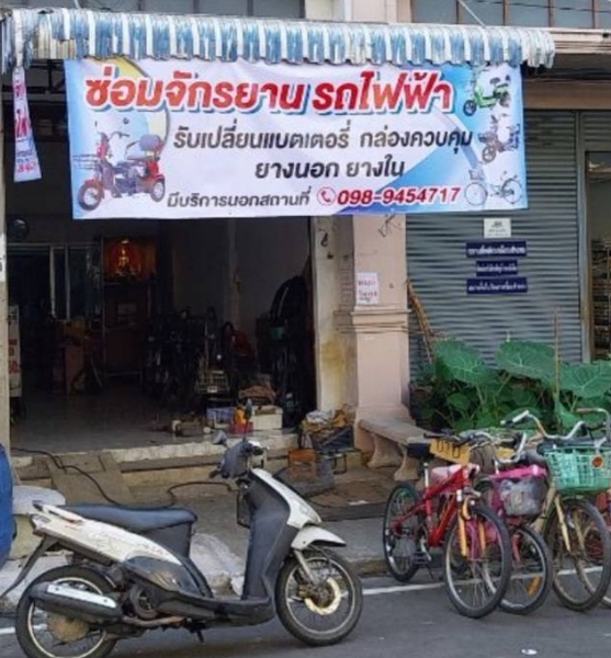 ร้านของเราให้บริการซ่อมจักรยานครบวงจร และรถไฟฟ้าทุกประเภท ไม่ว่าจะเป็นการเปลี่ยนยาง แบตเตอรี่ เกียร์ หรือแก้ไขปัญหาต่าง ๆ ที่เกิดขึ้นกับรถของคุณ เราพร้อมให้บริการอย่างใส่ใจ ซื่อสัตย์ และรวดเร็ว เพื่อให้จักรยานและรถไฟฟ้าของคุณกลับมาใช้งานได้อย่างปลอดภัยและมีประสิทธิภาพ รับงานทั้งซ่อมทั่วไป และงานเฉพาะทาง พร้อมอะไหล่คุณภาพและราคายุติธรรม มีบริการรับส่งรถรอบๆนนทบุรี คิดค่าน้ำมันตามจริงไม่บวกเพิ่ม